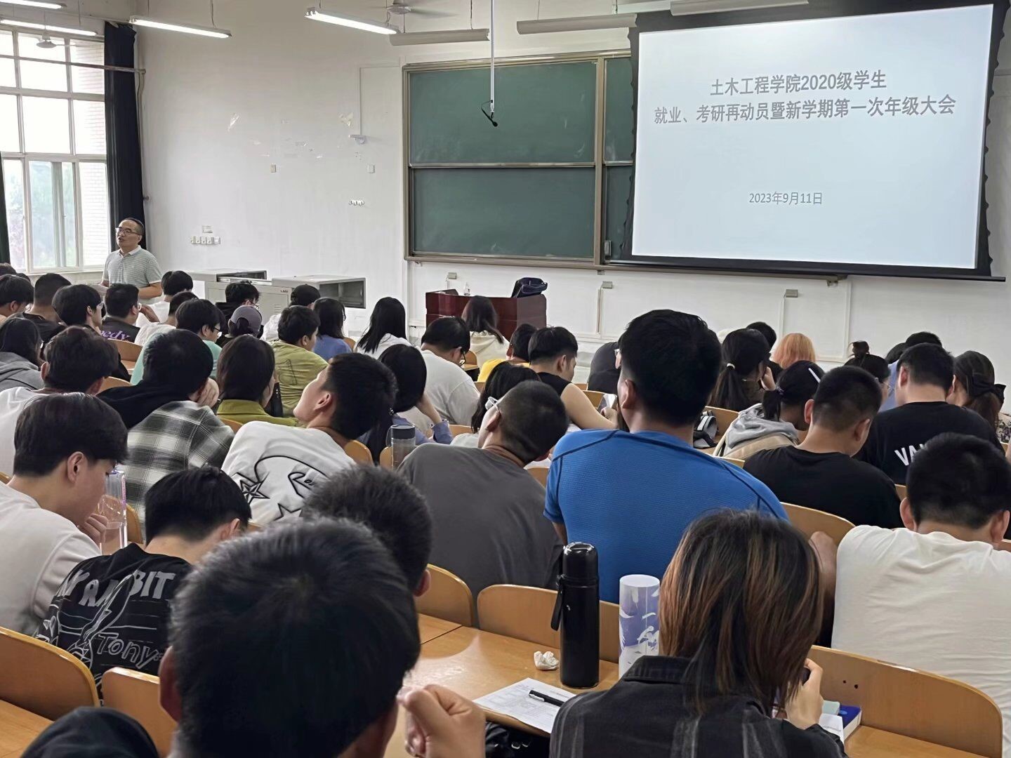 9月11日下午,土木工程学院在鄠邑校区博思楼B323教室召开2020级学生新学期第一次年级大会,大会的主题是就业服务和考研指导。学工办主任、2020级学生辅导员李化杰主持大会。2020级全体同学参加大会。