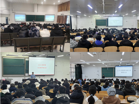 寒意渐退,春色已浓。新学期伊始,为了让全体同学能在新目标、新任务的指引下,勇担新使命,聚焦主责主业,进一步统一思想,凝心聚力,近日,土木工程学院各年级在鄠邑校区召开了主题年级大会。辅导员老师李化杰、张曼、奴丽艳木、康麒龙分别主持大会。