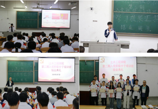 2024年5月7日晚,土木工程学院在鄠邑校区博思楼B112教室举行第二期入党积极分子培训班结业典礼暨学习成果汇报会。培训班全体学员、党工办主要学生干部参加了结业典礼。学院党委委员、学工办主任李化杰主持结业典礼。