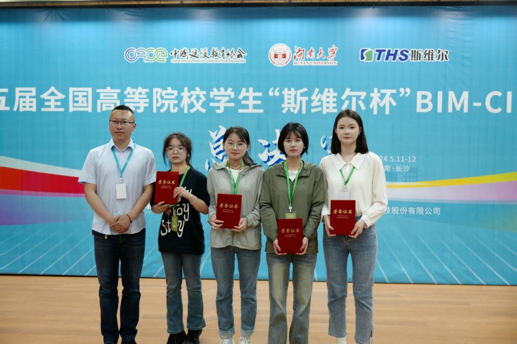 土木工程学院参赛学生张思晗、张婉琦、王雨欣、文璐璐(2021级工程管理专业)在尹志国、牛波老师的指导下荣获本科组“数字建造与管理BIM应用”赛道团队一等奖,刷新了我院在此项比赛的最好成绩。