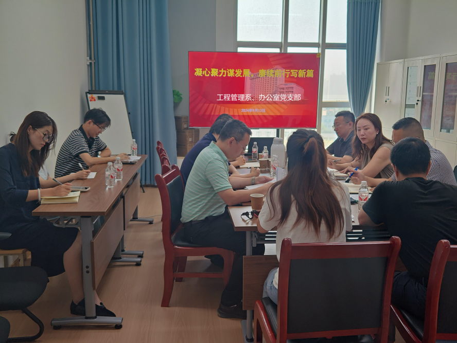 9月13日上午,土木工程学院工程管理系、办公室教工党支部在雁塔校区东方石油楼1105召开了“凝心聚力谋发展,赓续前行谱新篇”为主题的支部大会,专题研讨学科建设。学院党委书记贾莉娜以普通党员的身份参会,党支部全体党员参加会议。会议由党支部书记牛波主持。