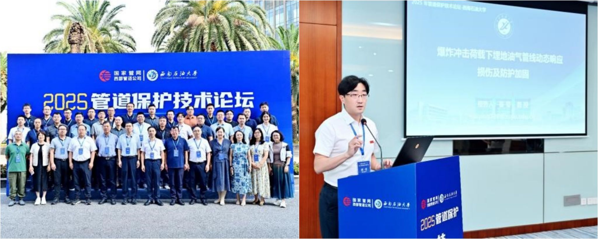 受邀委派副院长崔莹教授代表学院赴西南石油大学参加了由国家管网集团西部管道公司主办,西南石油大学承办的“2025管道保护技术论坛”并做了“爆炸冲击荷载下埋地油气管线动态响应损伤及防护加固”主题报告。论坛上国家管网集团西部管道公司党委委员、副总经理王新生和西南石油大学党委书记张烈辉分别做了主旨发言。崔莹的学术报告获得了会议主持人中国石油大学(华东)李玉星教授、召集人西南石油大学廖柯熹教授等与会专家们的肯定,并对学院在极端荷载下长输油气管线的安全评价方面做出的前沿探索和基础研究表示了赞赏。