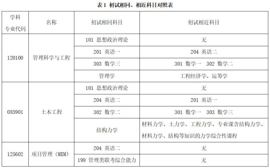 4.初试科目应与调入科目专业初试相同或相近,其中初试全国统一命题科目应与调入专业全国统一命题科目相同。