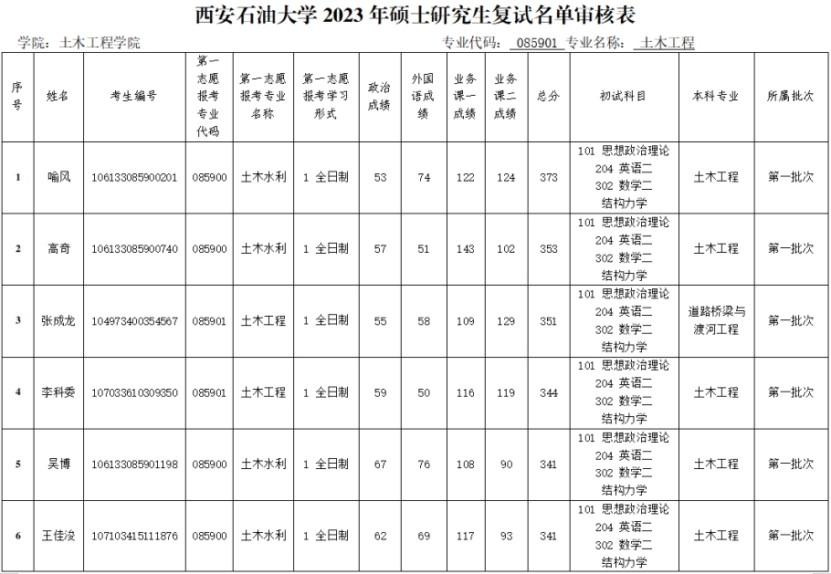 现将土木工程学院调剂第一次参加复试考生名单予以公布,请各位考生按照要求准时参加。如考生对复试名单有异议,请与我院办公室联系。