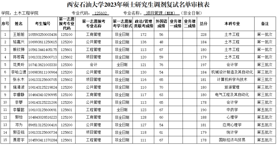 现将土木工程学院调剂第四次参加复试考生名单予以公布,请各位考生按照要求准时参加。如考生对复试名单有异议,请与我院办公室联系。