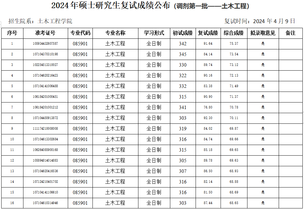 根据教育部及陕西省教育考试院相关文件精神和要求,现将土木工程学院2024年硕士研究生复试成绩(调剂第一批—土木工程)予以公布。如有异议,可通过以下方式反映。