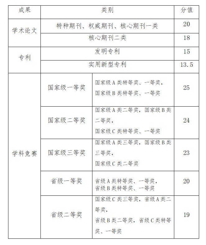 注:①学科竞赛国际赛事参照国家级获奖分值计算,但不得低于国内赛事相关要求。