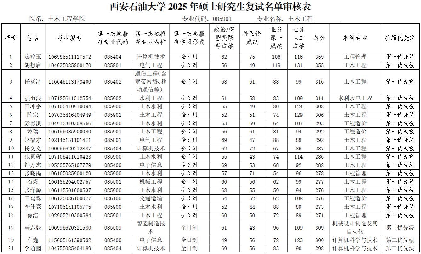 现将土木工程学院参加复试考生名单(调剂第二批)予以公布,请各位考生按照要求准时参加。如考生对复试名单有异议,请与我院办公室联系。