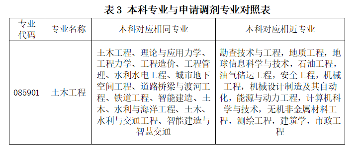 申请调剂土木工程的考生,学院将对照考生本科专业(表3),按照优先级顺序遴选调剂复试考生,同一优先级内的考生按照初试总分由高到低遴选进入复试。