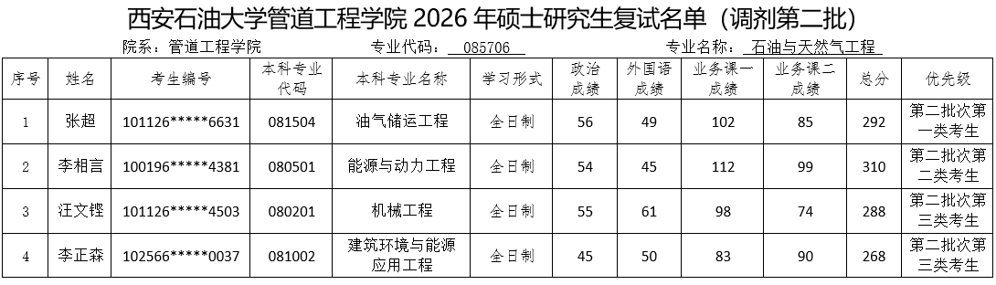 参加复试考生名单(调剂第二批)予以公布,请各位考生按照要求准时参加复试。如考生对复试名单有异议,请与我院办公室联系。