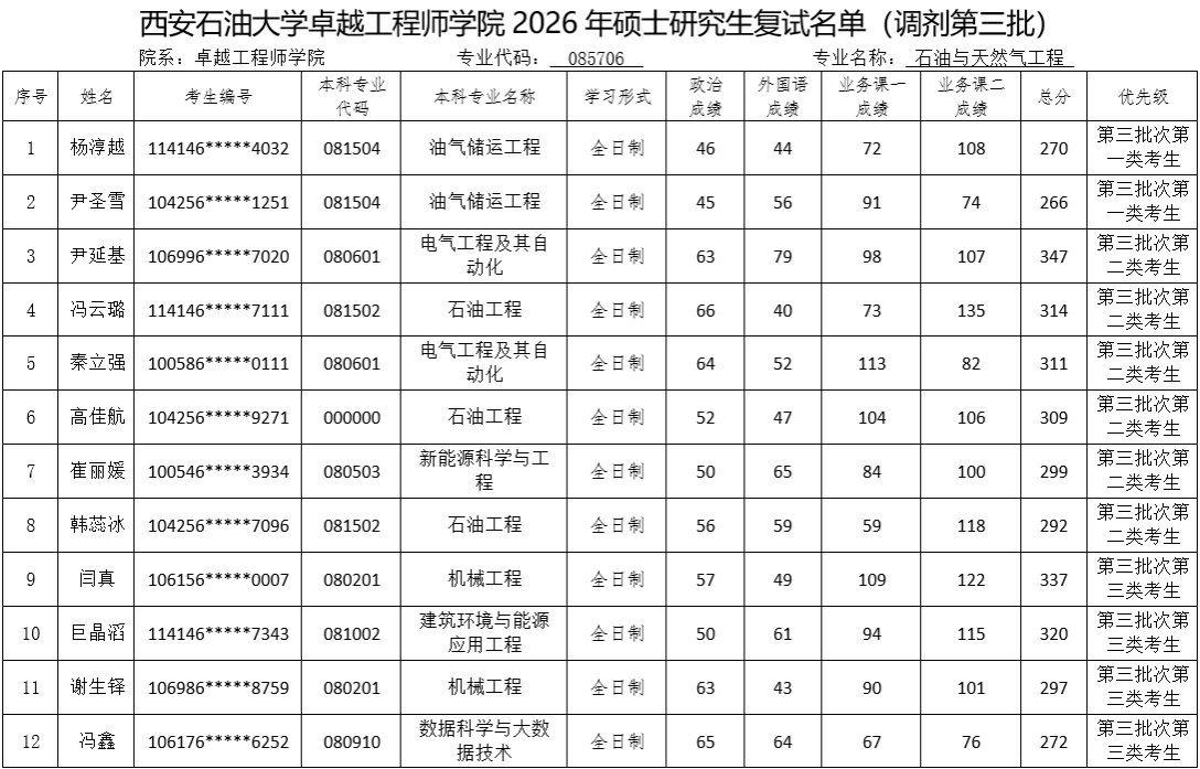 参加复试考生名单(调剂第三批)予以公布,请各位考生按照要求准时参加复试。如考生对复试名单有异议,请与我院办公室联系。