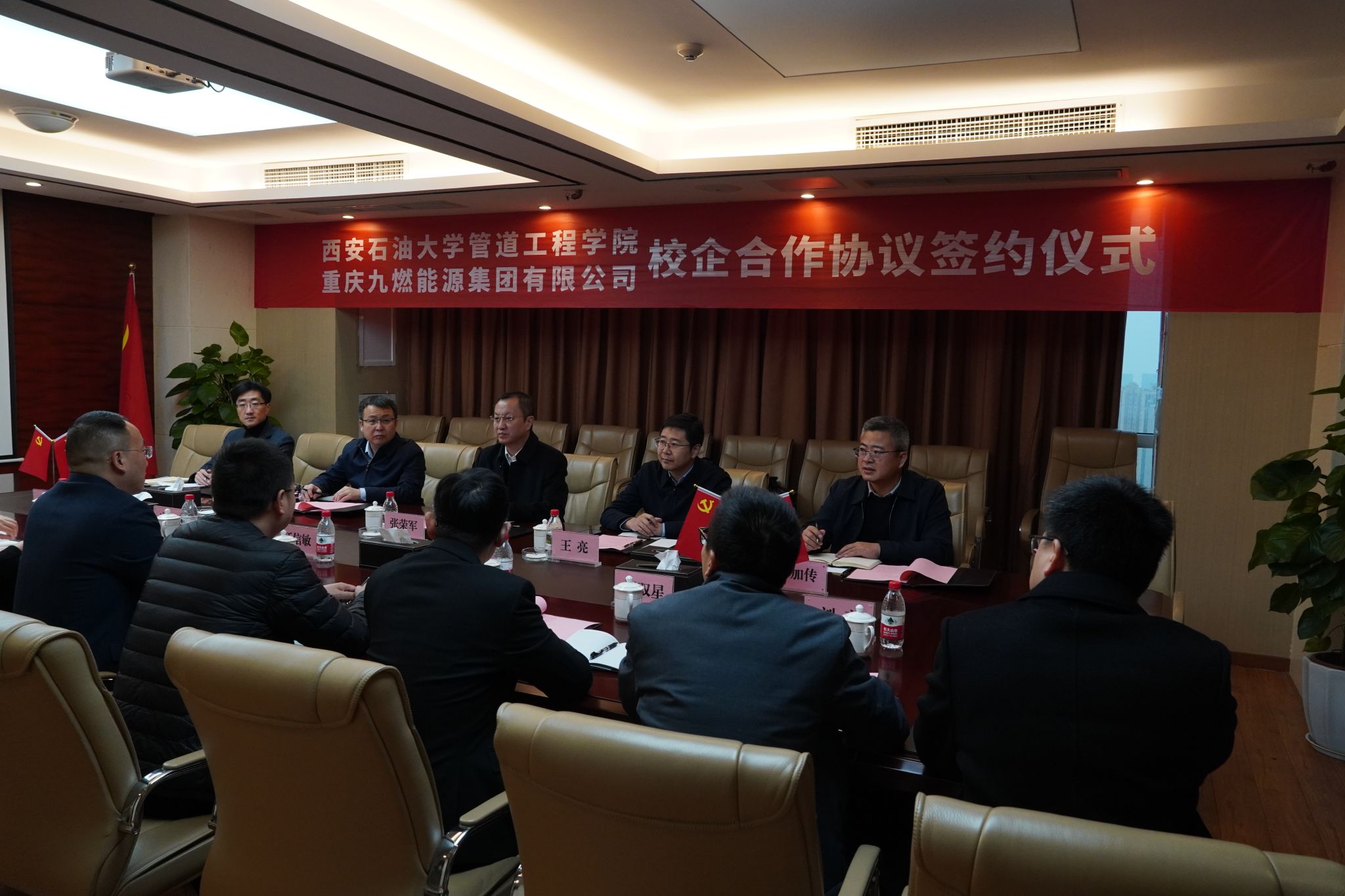 产学研协同发展与企业需求精准对接,实现资源共享与优势互补,12月22日,副校长张荣军带队赴重庆九燃能源集团有限公司(以下简称“九燃能源集团”)交流座谈,并代表学校与集团签署校企合作框架协议,九燃能源集团董事长江信敏及相关部门负责人出席活动。双方围绕课题研究、专业建设、人才培养、学生实习就业、员工继续教育与培训等方面展开深入交流。